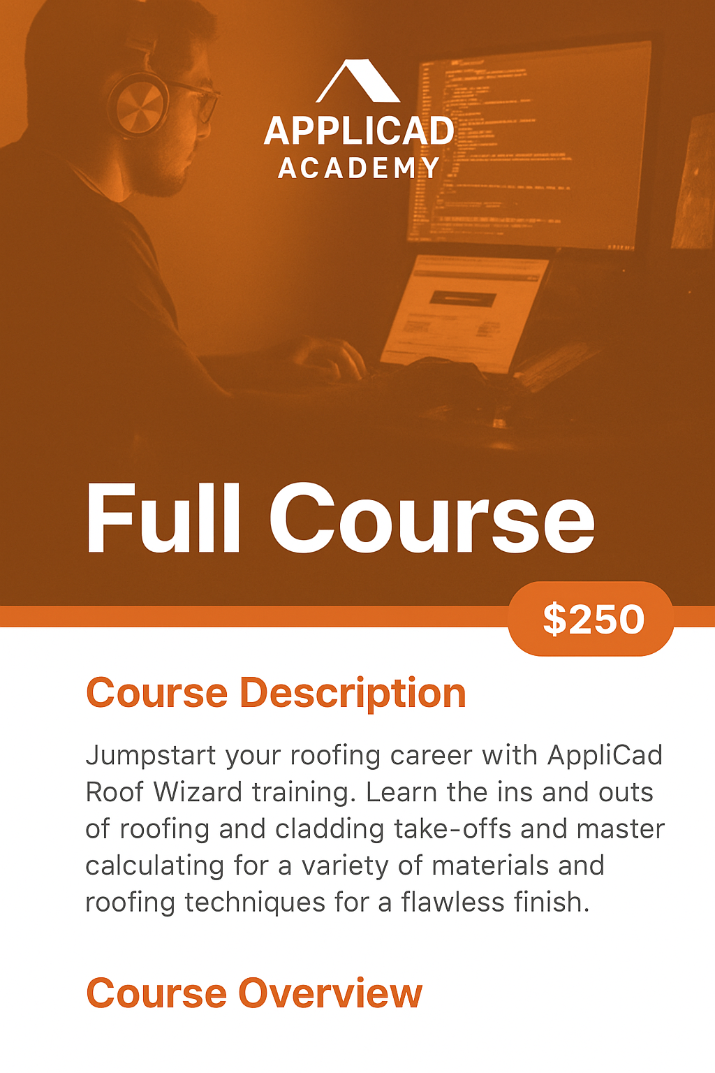 Jumpstart your roofing career with AppliCad Roof Wizard training. Learn the ins and outs of roofing and cladding take-offs and master calculating for a variety of materials and roofing techniques for a flawless finish.